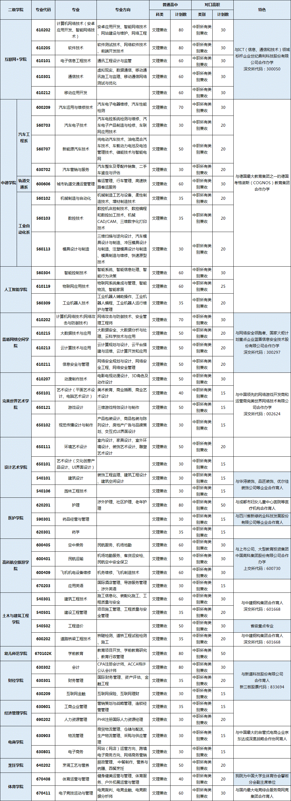 四川科技职业学院执行教育部和省级教育行政部门核准的招生计划总数,并通过各省级招生主管部门、学院招生简章、学院网站等形式向考生公布。